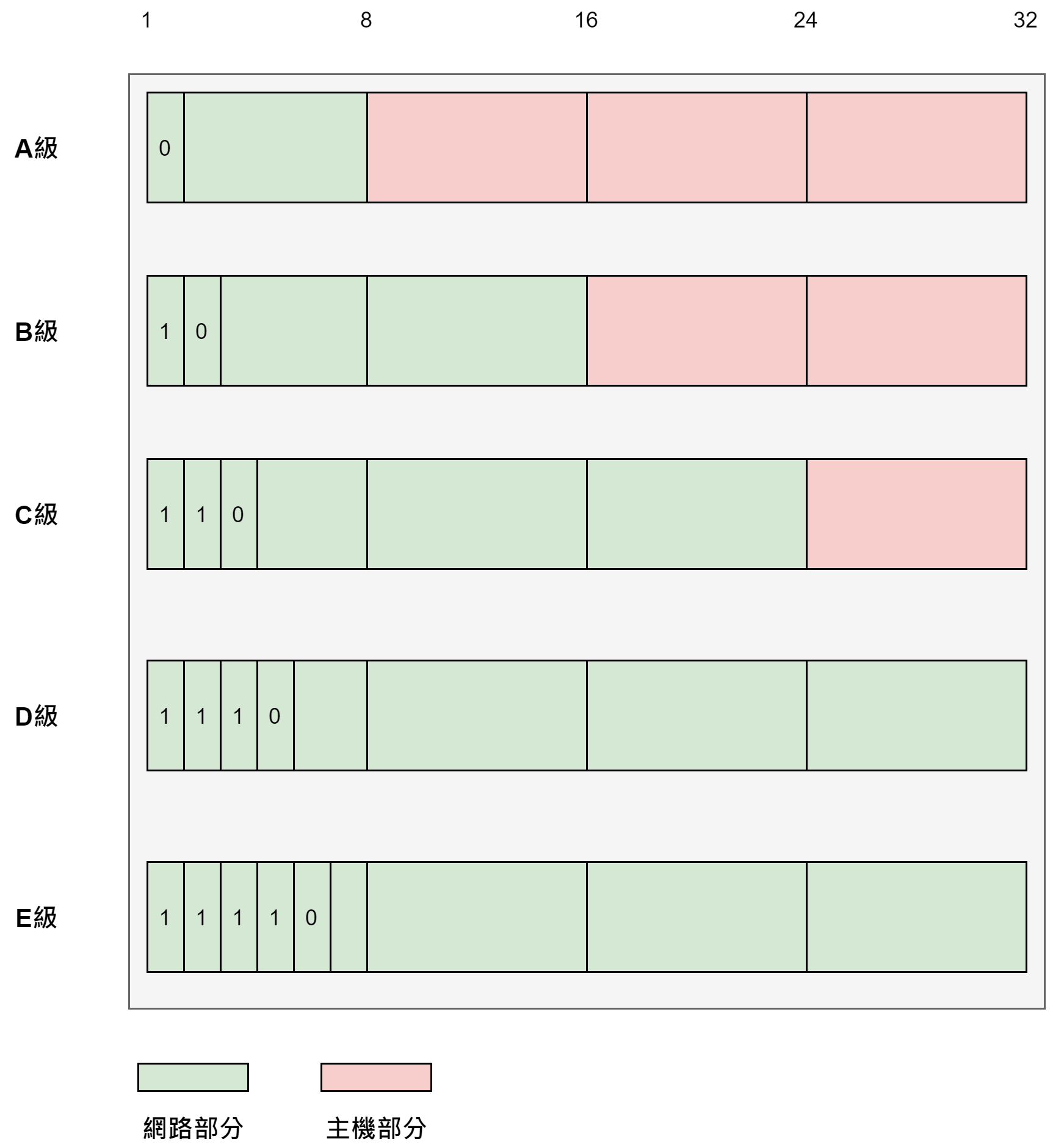 依照网络的用途与子网主机数量要求,IP地址为了有效分配IP给不同层级的客户,引进了IP等级制度。网络部分长度越小,代表可以分配的主机数量越少,但相对的它可以容纳更多的子网主机数量,这种类型的IP地址就非常适合分配给大机构与政府机关
