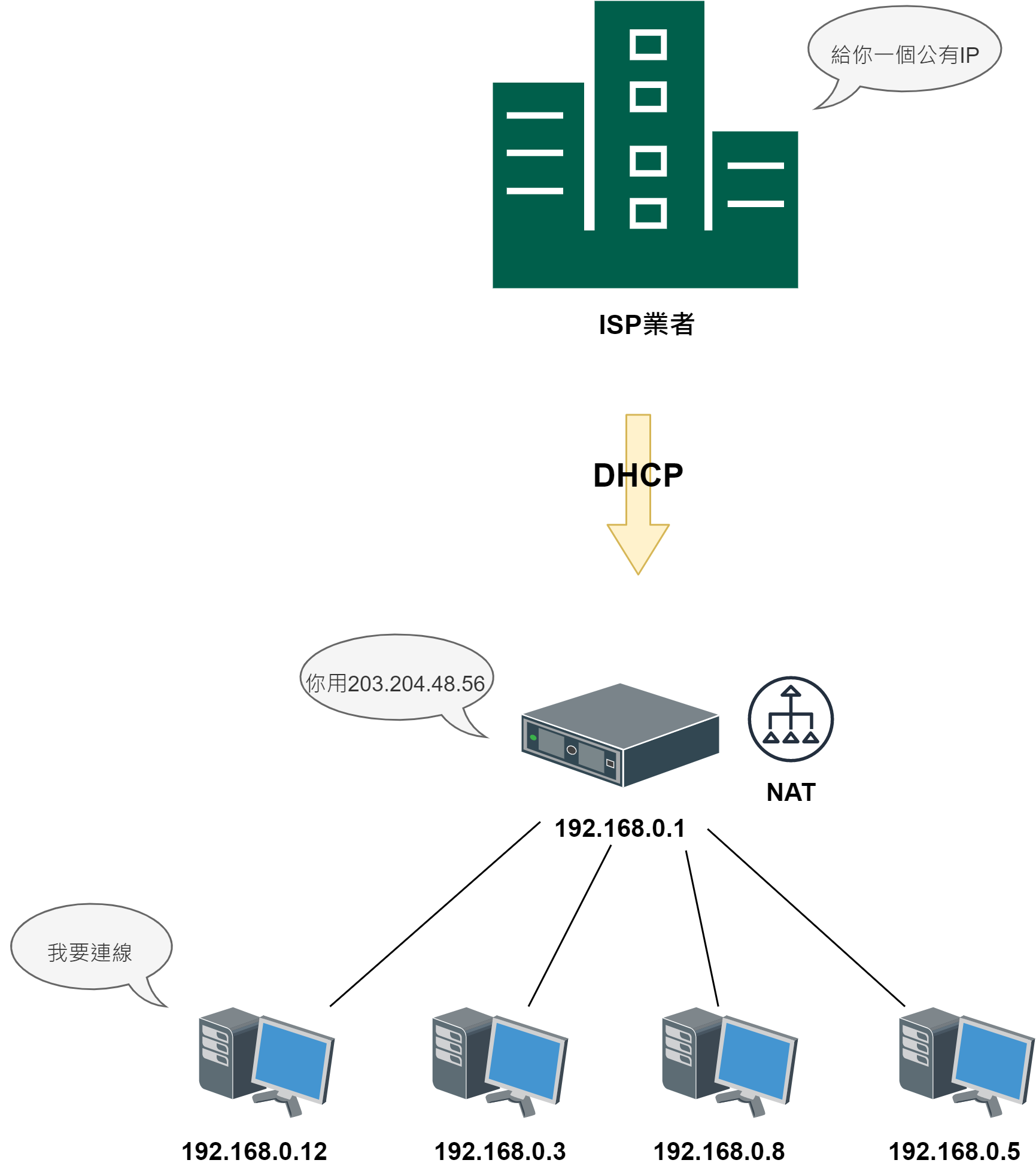 先来简单介绍一下DHCP与NAT之间的关系。当设备有上网的需求时,ISP电信商就会动态分配一个可以上网的公有IP地址,这种技术就称为DHCP。而子网域内的私有IP是无法上网的,因此NAT的责任就是让子网内多台设备共用一个DHCP分配的公有IP。这个分配到的IP我们就称为浮动IP,所以假如你的DHCP功能是显示开启,那代表你的设备是使用浮动IP的方式进行上网