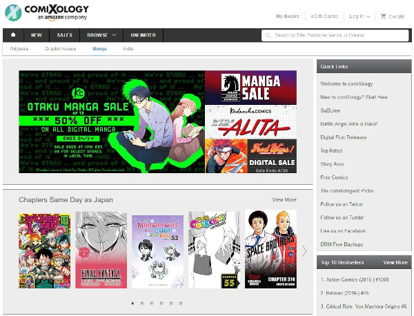 该网站干净且运行良好。有几十个类别,其中漫画是主要的。有些标题是免费的,但其他标题必须按标题付费。您必须先购买或添加到购物车,然后才能阅读任何内容,但除此之外,该网站运行良好。