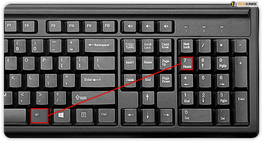 - 按键盘上的 ALT 键,然后按数字键盘上的数字 7。