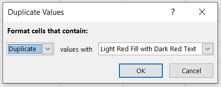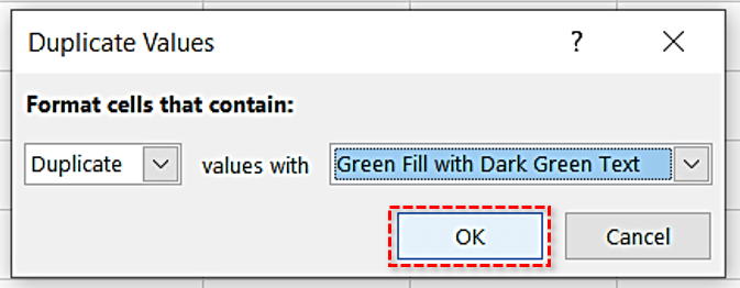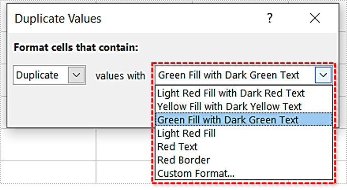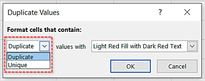 5. 第一个下拉列表允许您选择要着色的单元格,重复唯一