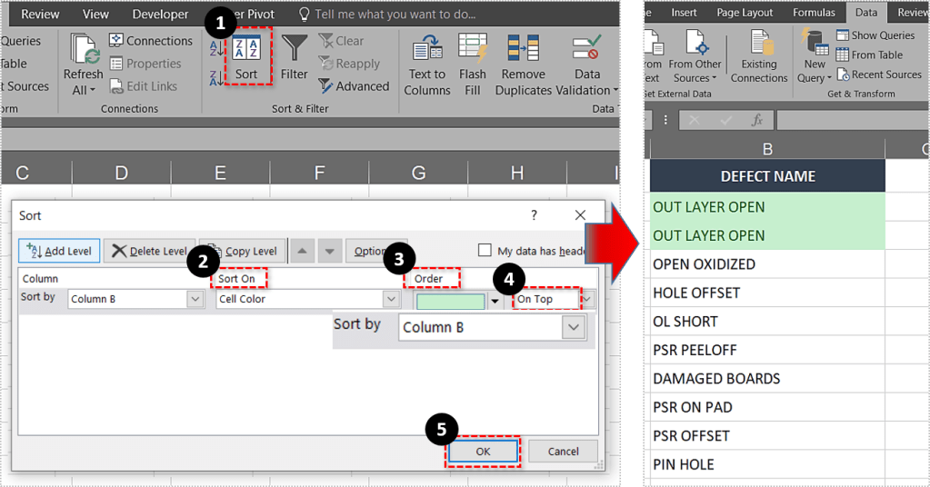 2. 转到数据-> 排序和排序过滤器-> 排序