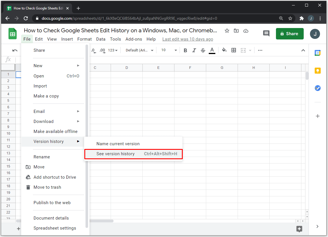 使用“版本历史”选项,您可以访问任何工作表的早期版本,并查看谁进行了更改以及在何处进行了更改。如果您想查看谁编辑了您的文档,只需几个简单的步骤即可: