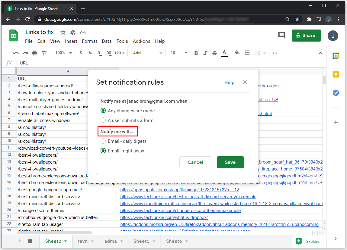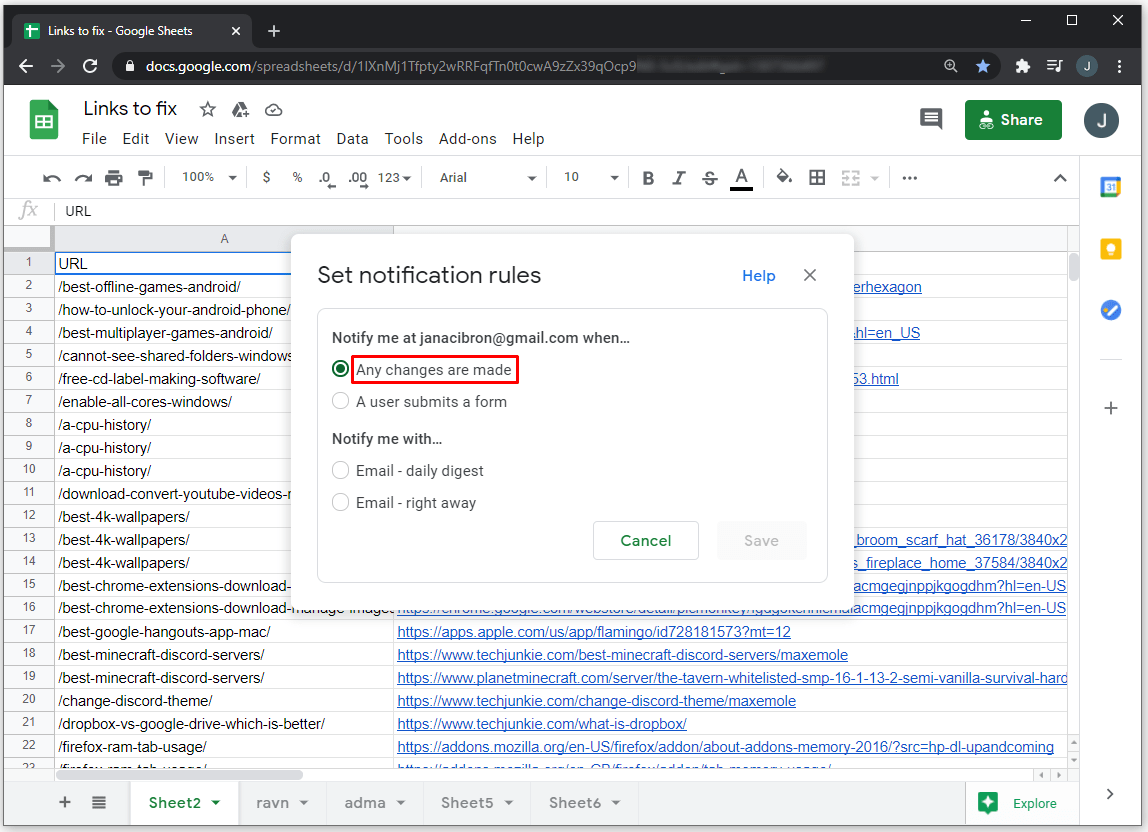 通过在 Google 表格中启用通知规则,您可以随时获取有关更改的最新信息你的电子表格。您可以决定是要在有人进行更改时收到通知,还是要获取每日报告作为所有编辑的摘要。