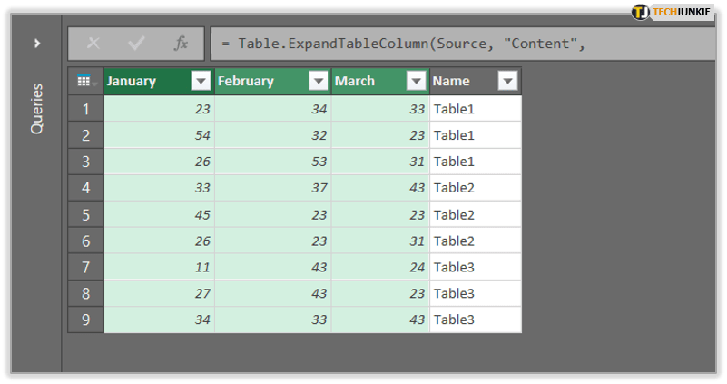 现在应该将来自不同工作表的所有数据合并到一个表格中。在最后一列中,您将能够看到您为 Excel 表格指定的名称。这使您能够知道某条数据来自哪个 Excel 表。这是一个非常有用的功能,尤其是当您必须处理大量数据时。