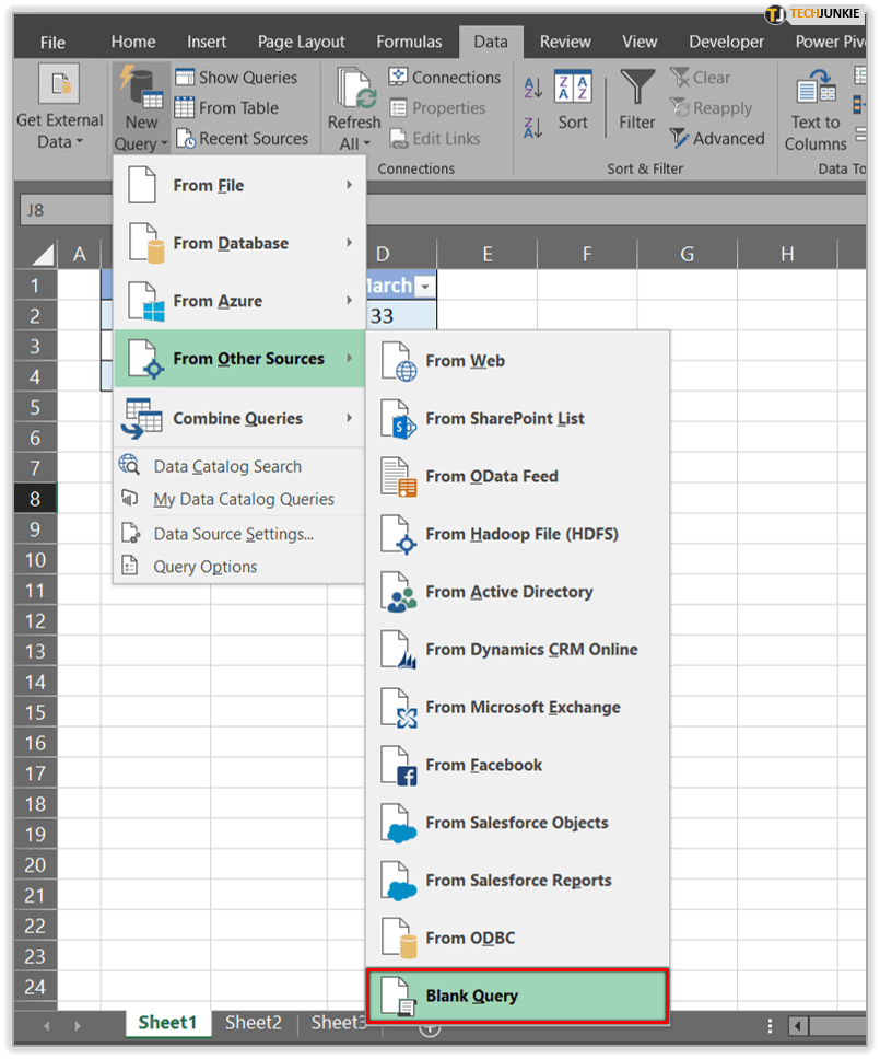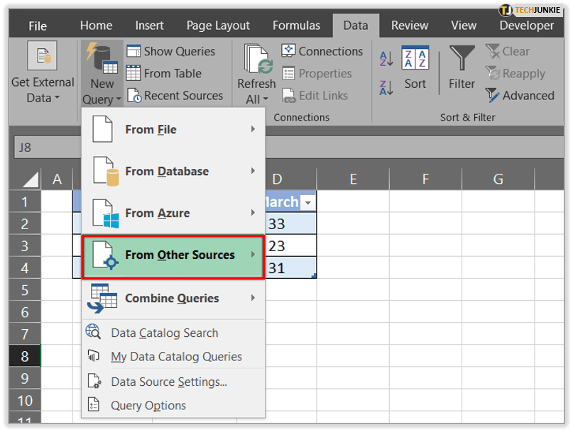 2. 在“数据”选项卡下方,单击“新建查询”,然后在选项中选择“来自其他来源”。然后,您将能够从各种其他来源导入数据。