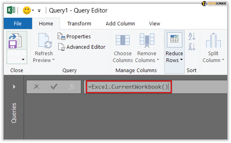 5. 那里,你需要在公式栏中输入这个公式:=Excel.CurrentWorkbook()
