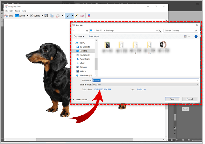 3. 选择“新建”并用光标勾勒出图像的轮廓。该工具应拍摄快照。