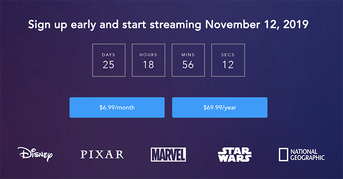 我们想不出还有什么时间可以使用此选项,但不管你信不信,您可以在发布一个月后预订 Disney Plus。前往这里的 Disney Plus 预览网站,您可以在其中查看显示 Disney Plus 最终推出时间的倒计时。在倒计时下方,在每月 6.99 美元或每年 69.99 美元之间选择您的首选付款方式。如果您计划订阅 Disney Plus 至少一年并且负担得起年度订阅费用,则 69.99 美元的选项将在订阅的第一年为您节省约 14 美元。