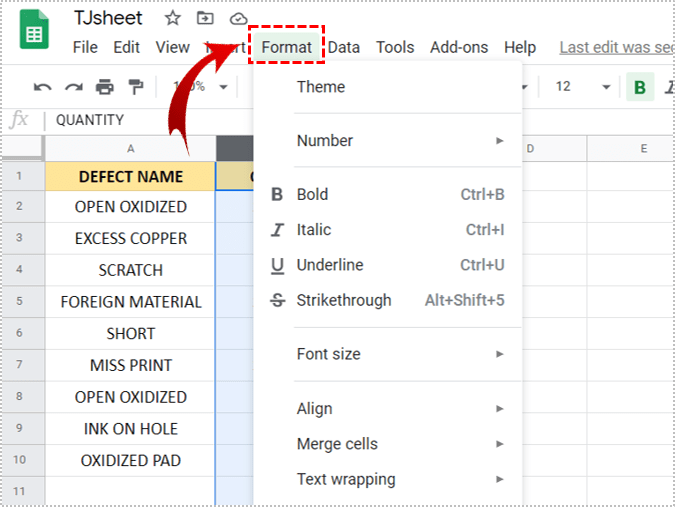 2. 从顶部菜单栏中,选择格式。
