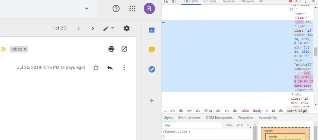 如果您使用 Gmail 或其他webmail 客户端,然后使用 Google Chrome 强大的“检查元素”功能临时修改在屏幕上显示电子邮件的 HTML 代码,然后对显示的电子邮件进行截图以“证明”该电子邮件具有特定日期。