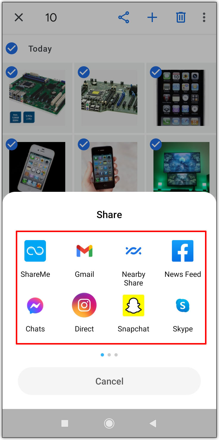 - 突出显示要分享的所有照片,然后点按屏幕右上角的加号图标。