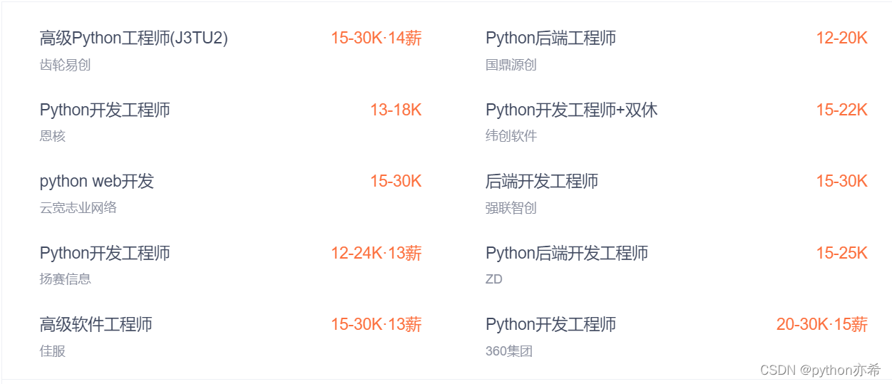 从上面的图片可以看出,python工程师的工资特别高,所以学python可以赚很多的钱,