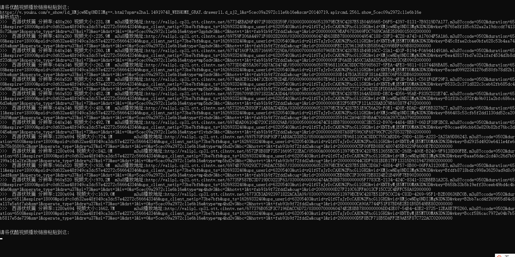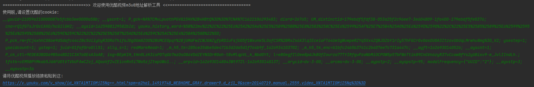 print("="*35 +'>> 欢迎使用优酷视频m3u8地址决议工具 <<'+"="*35)