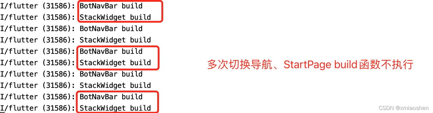 StartPage 包含了 内容区域 (StackWidget) 和底部导航 (BotNavBar) . 当首次进入应用时 , 会渲染内容容区域和底部导航 . 当我们需要切换其它导航时 , 要做到切换导航重新渲染内容区域和底部导航而不执行内容区域和底部导航的父控制元件StartPage的build函式,需要用到GlobalKey来实作点击导航重绘内容区域而不执行StartPage的build函式 .